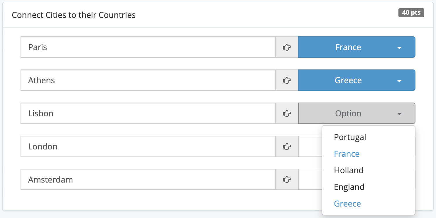 Compose multipart segments with different Question types that all can be automatically graded based on the student's answers and the pre-provided correct answers.