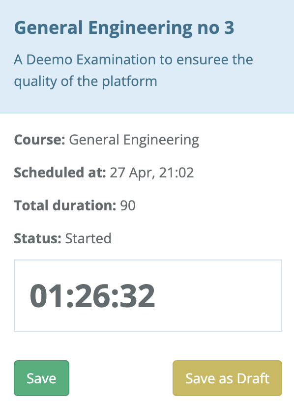 Students can save their answers as draft without publishing them for grading in order to avoid technical issues to their pending submissions.